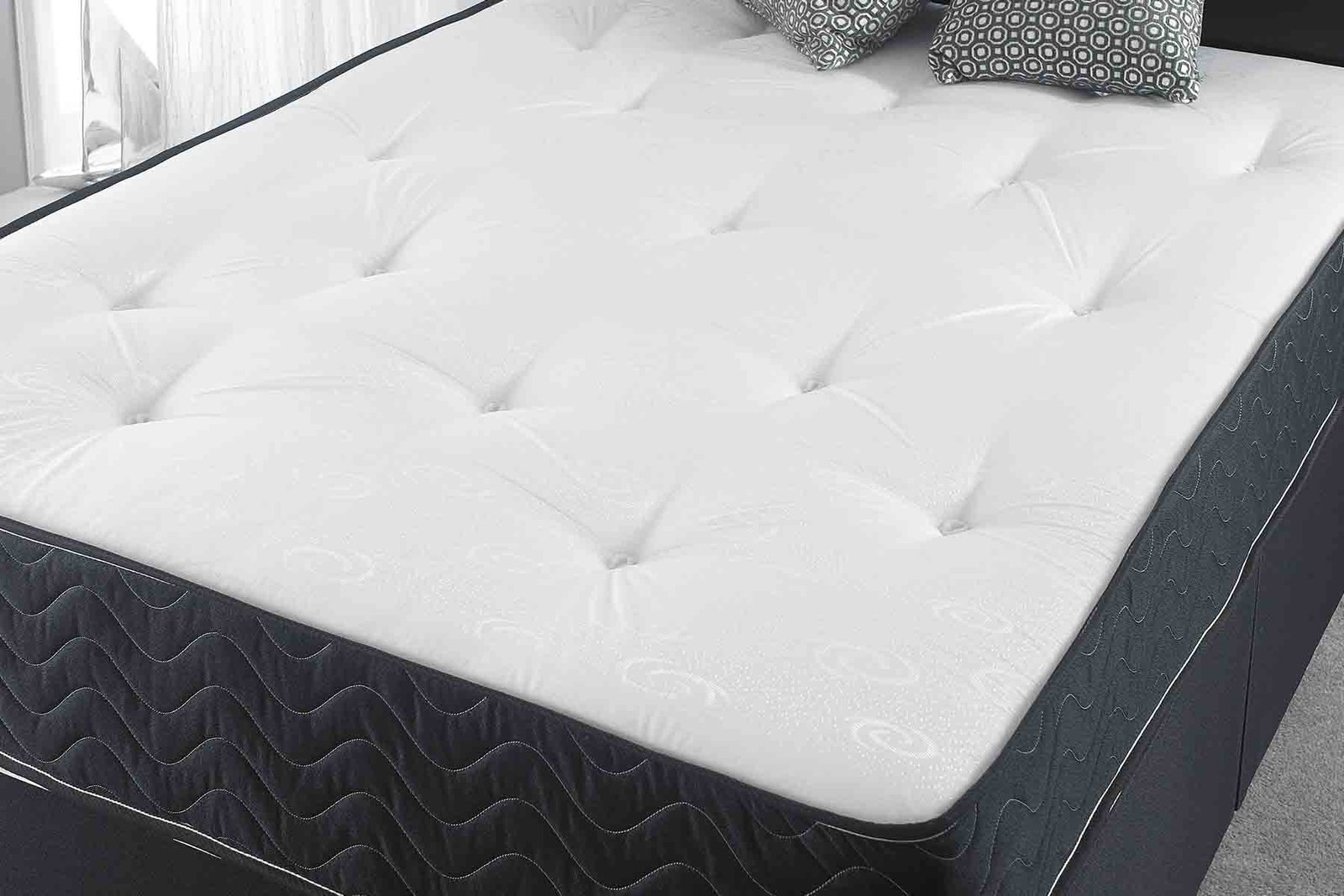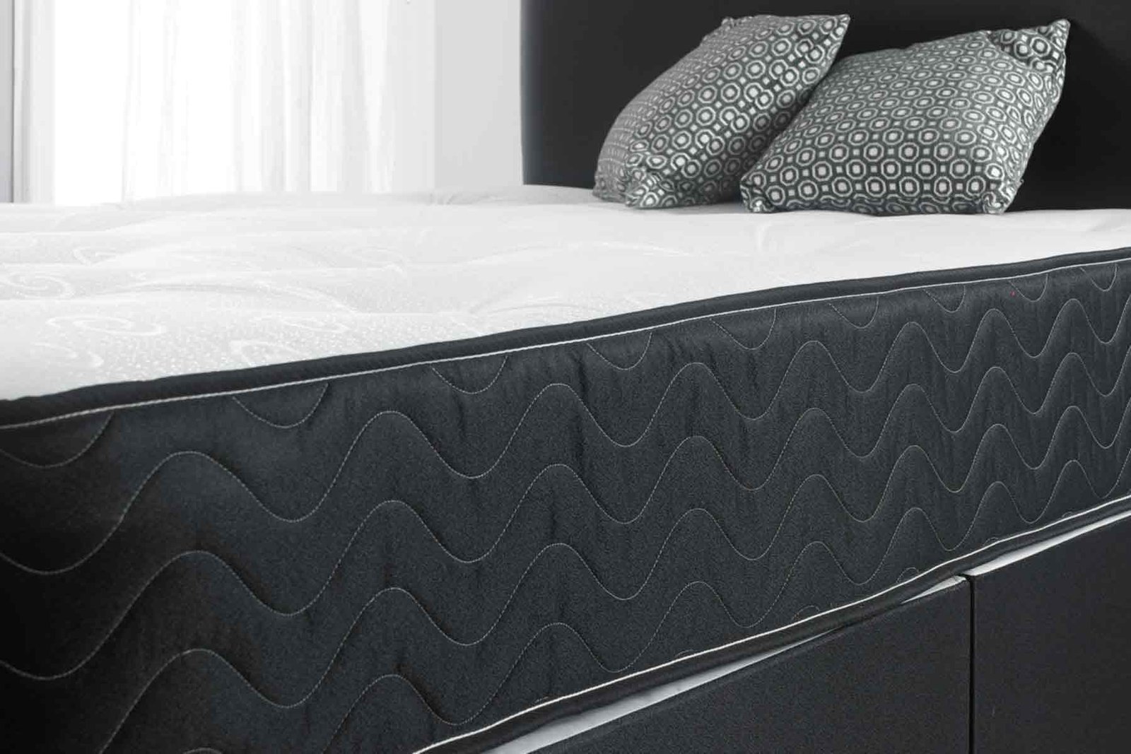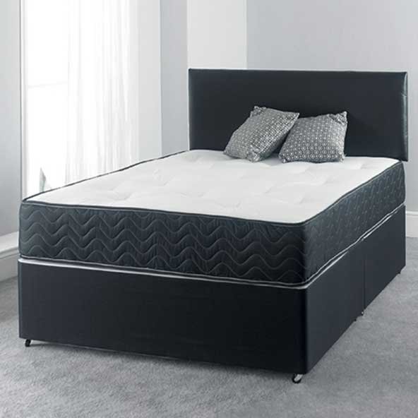 The Mattress comes with a with a solid top divan base with the option of storage and a basic faux leather headboard.
