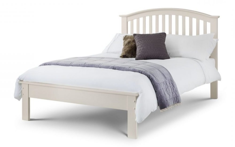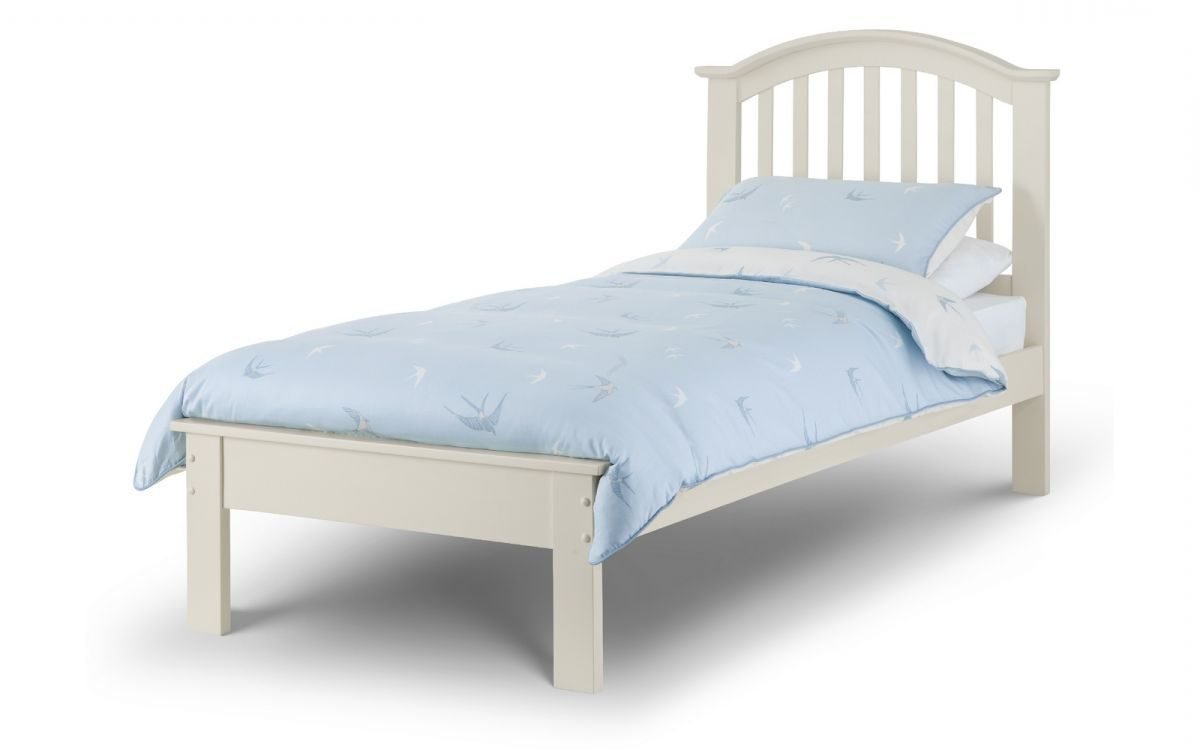 Olivia is a charming wooden bed in a stone white lacquered finish, featuring a subtle curved headboard for a refined look that fits with all styles of décor. A solid slatted base makes for a comfortable night’s sleep and a robust construction.