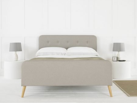 Contemporary minimalist fabric upholstered Renee bed frame. Straight sleek frame is the great addition to any style bedroom. The minimalist tufted headboard on the Renee has subtle simple detail.